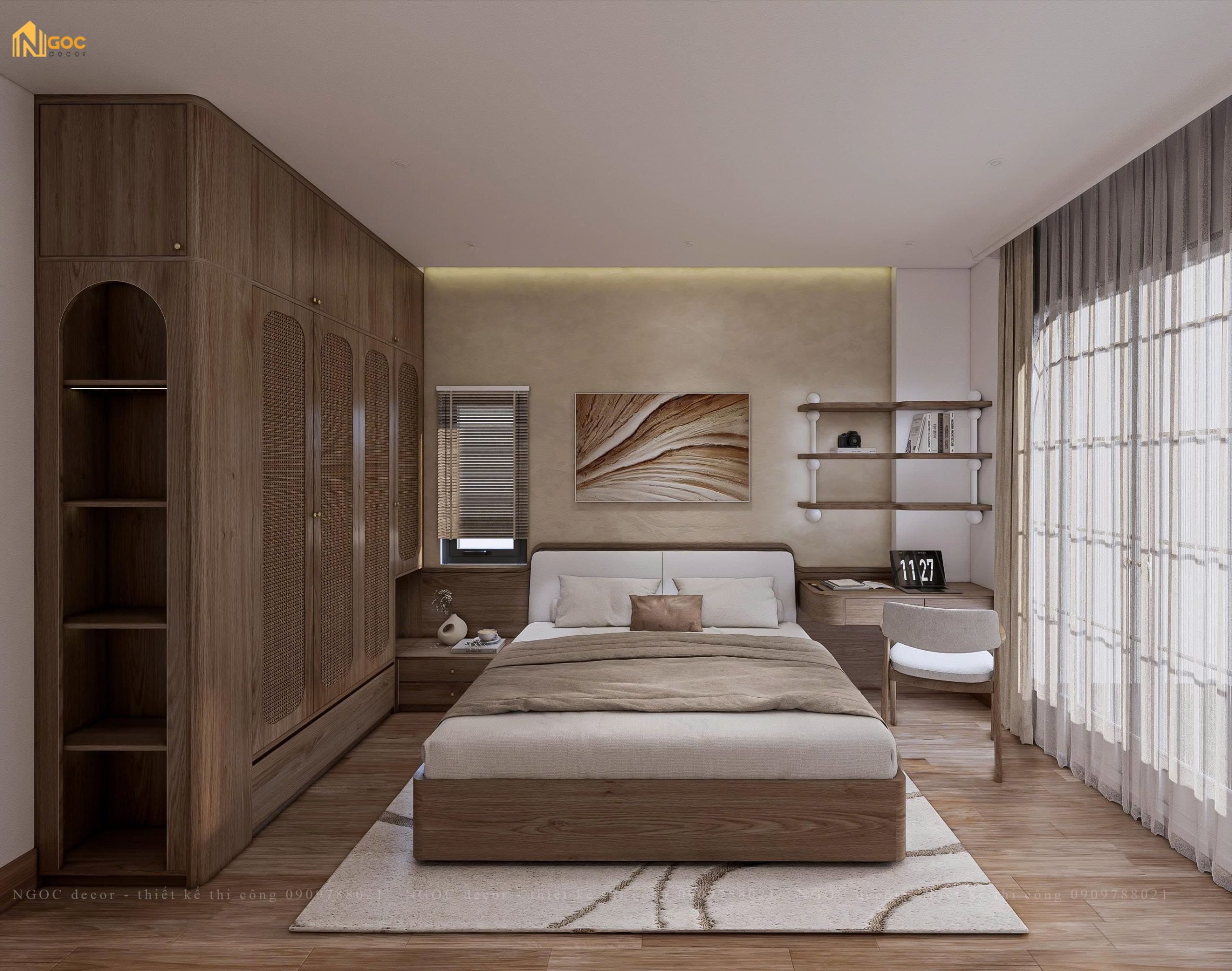 Không gian nhà ở qua bàn tay của NGOC decor sẽ là một không gian sống lý tưởng, nơi sự gọn gàng, ngăn nắp hòa quyện với vẻ đẹp trầm ấm của vật liệu gỗ. Căn hộ không chỉ là nơi ở mà còn là tổ ấm thư giãn hoàn hảo sau một ngày làm việc bận rộn.