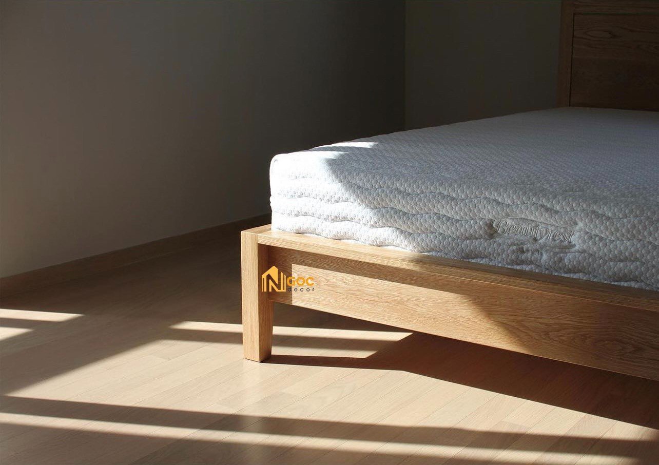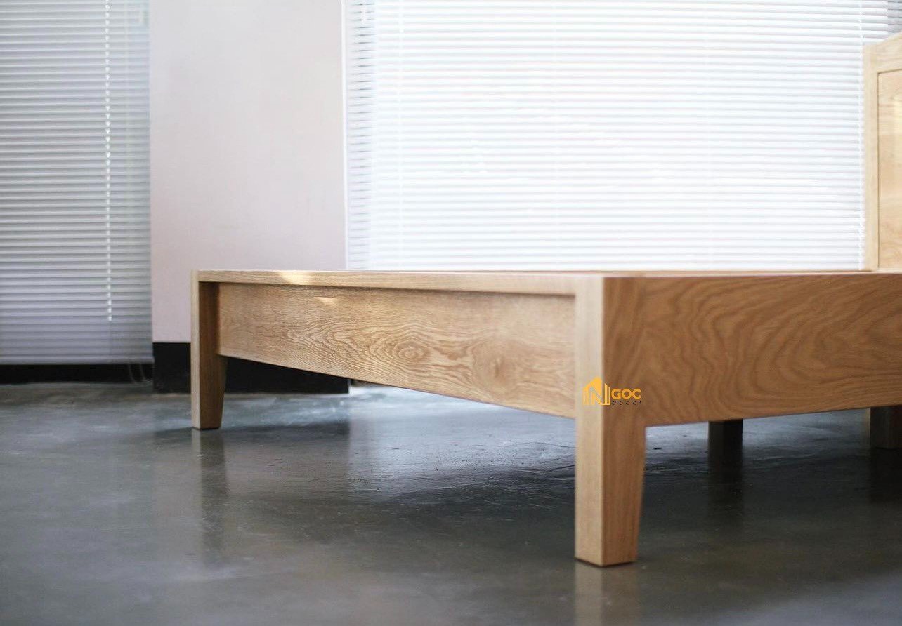 - Chất liệu: Khung gỗ Tần Bì(Sồi), mặt giường gỗ MDF lõi xanh chống ẩm.