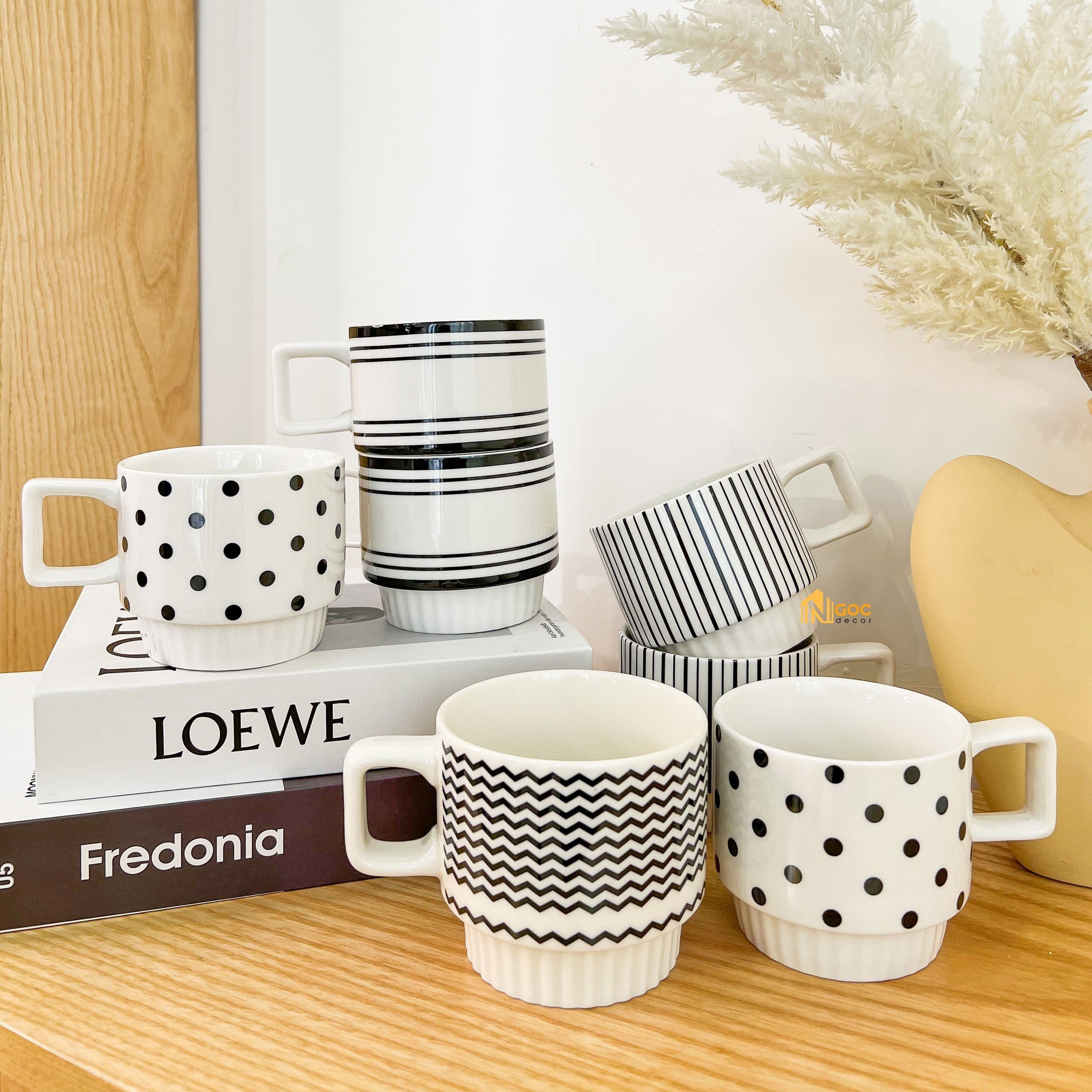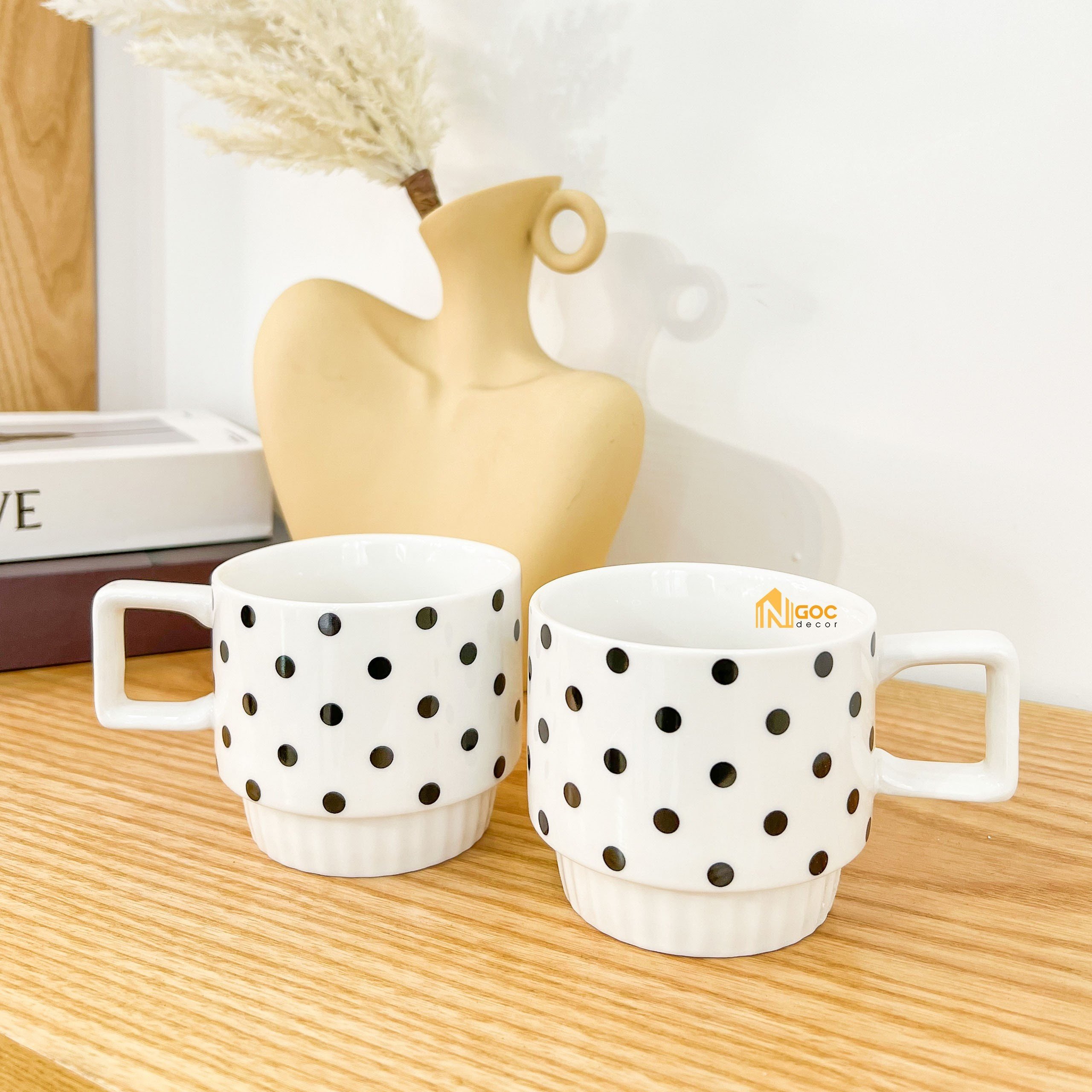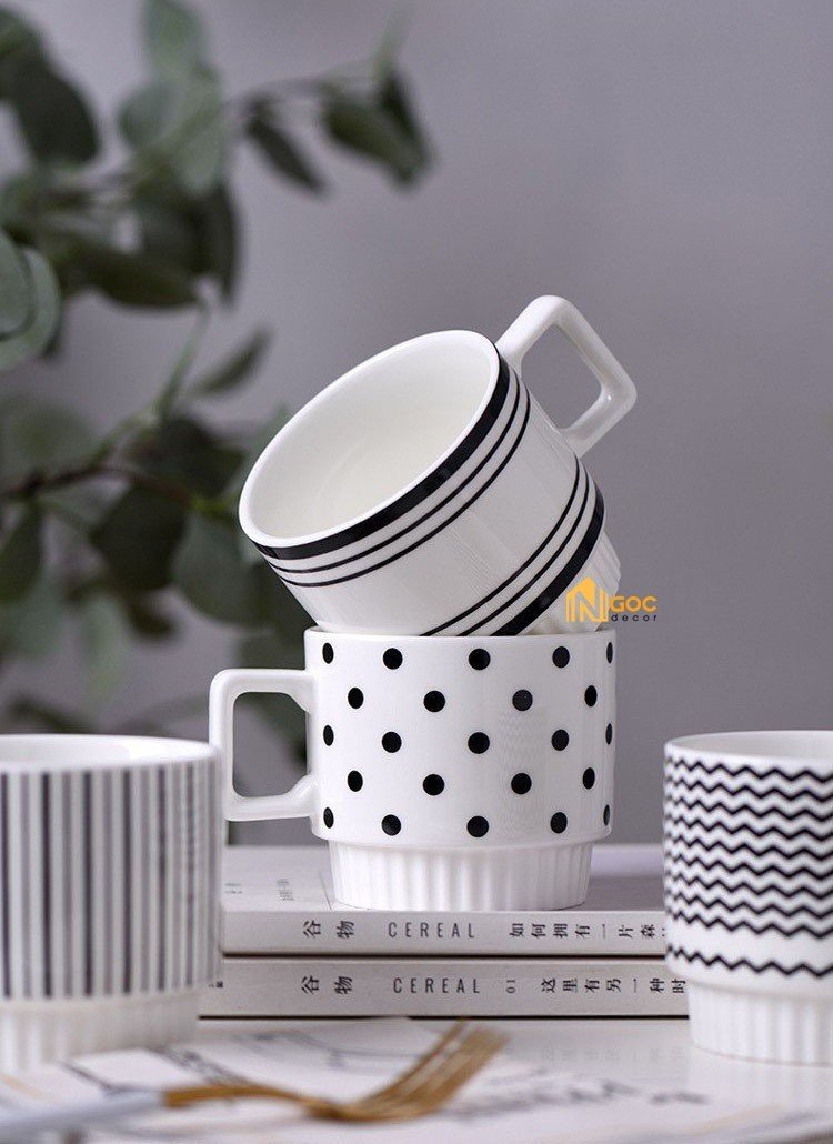 Cốc uống nước bằng sứ kiểu Hàn, Ly sứ có quai cầm decor trang trí nhà cửa