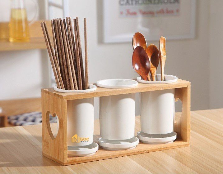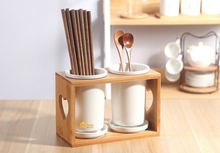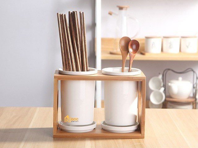 Bộ ống đựng đũa sứ trắng kèm kệ gỗ đa năng theo phong cách Nhật Bản có thiết kế đơn giản, màu sắc trắng thanh lịch, rất tiện lợi khi sử dụng.