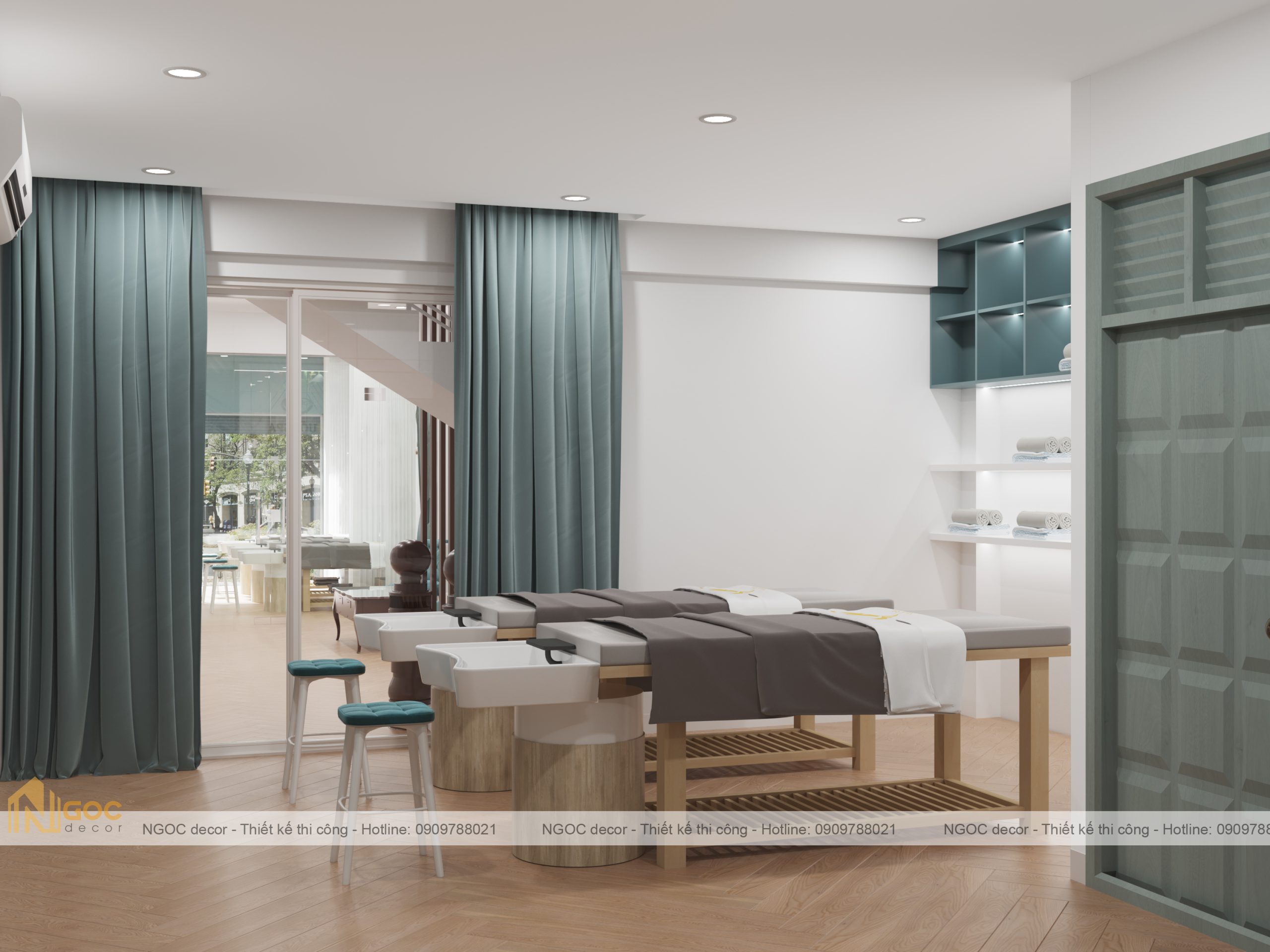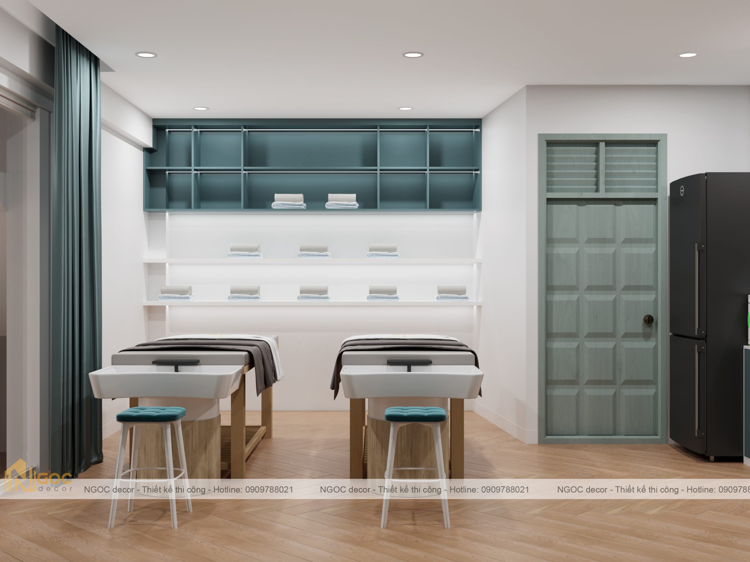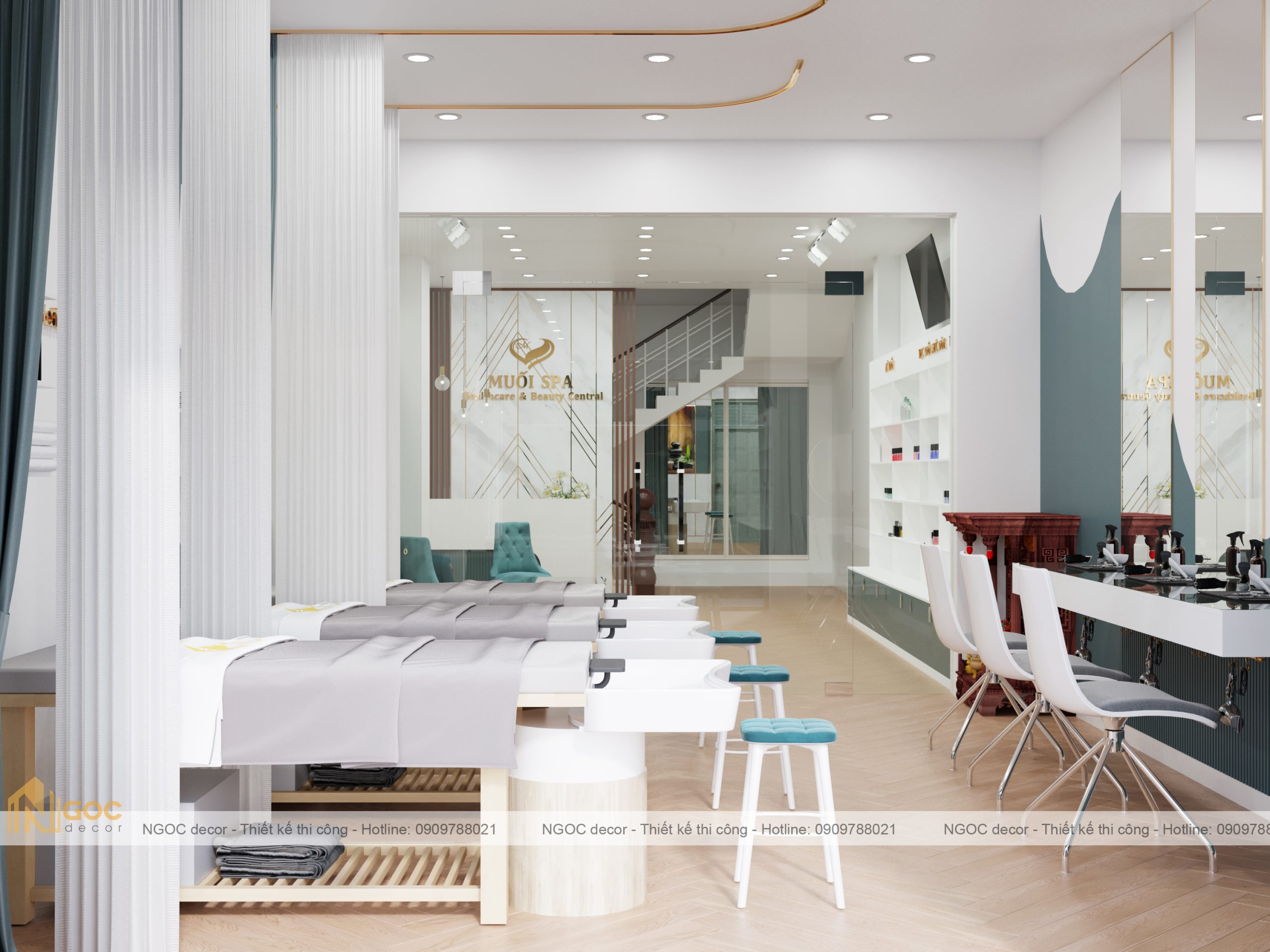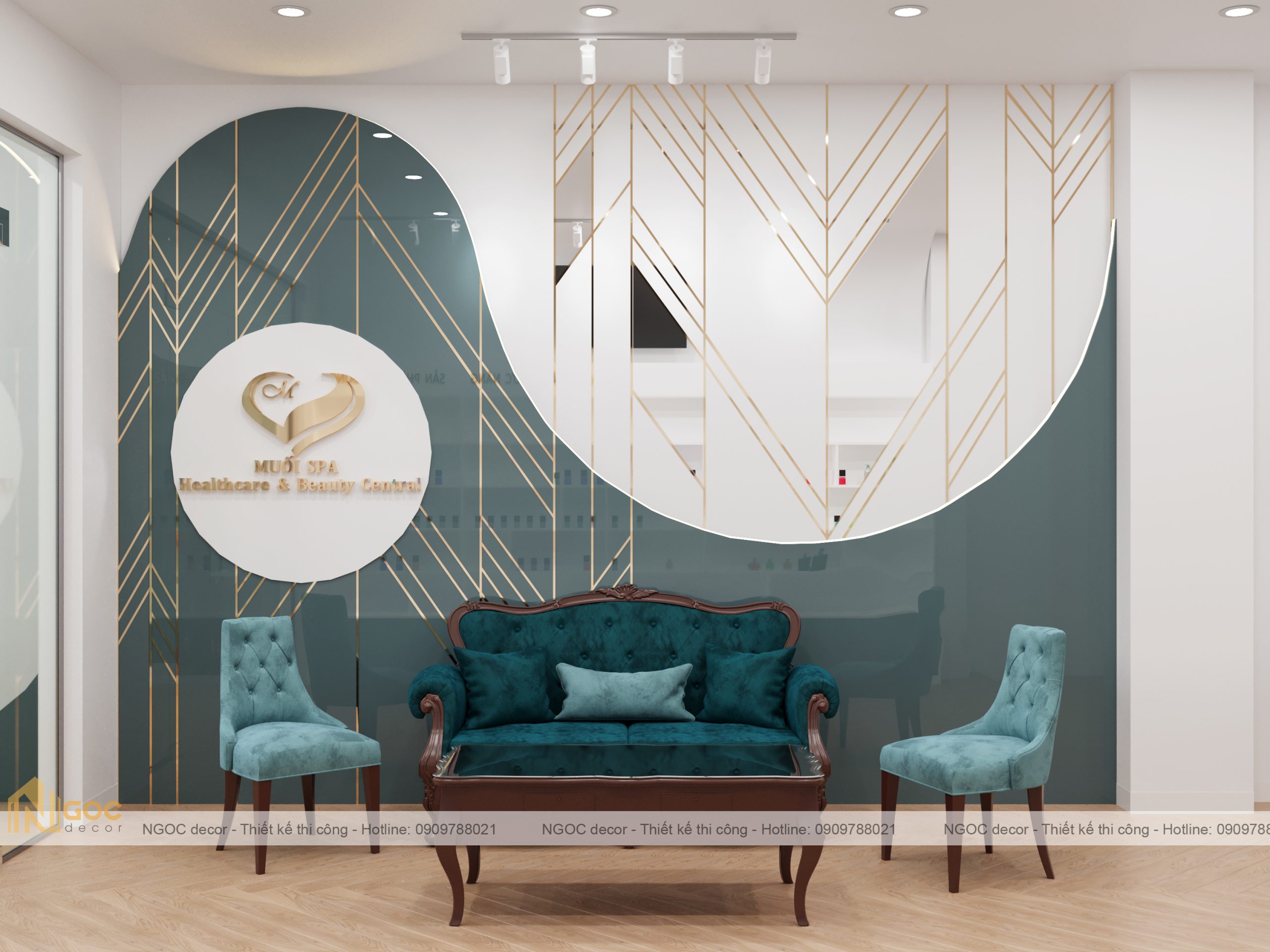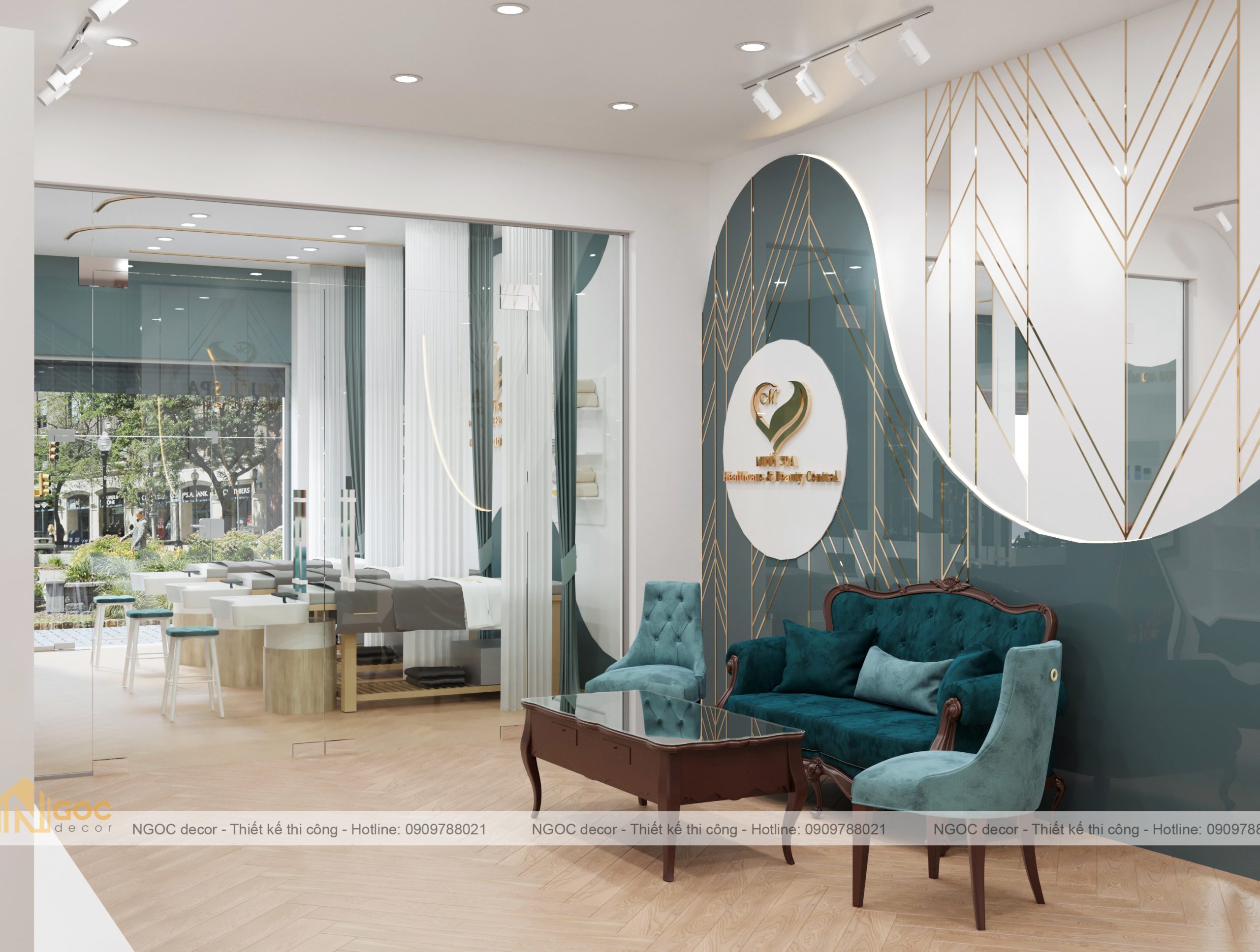 Bao gồm phòng spa ngoài, phòng tiếp khách – lễ tân, phòng spa phía trong