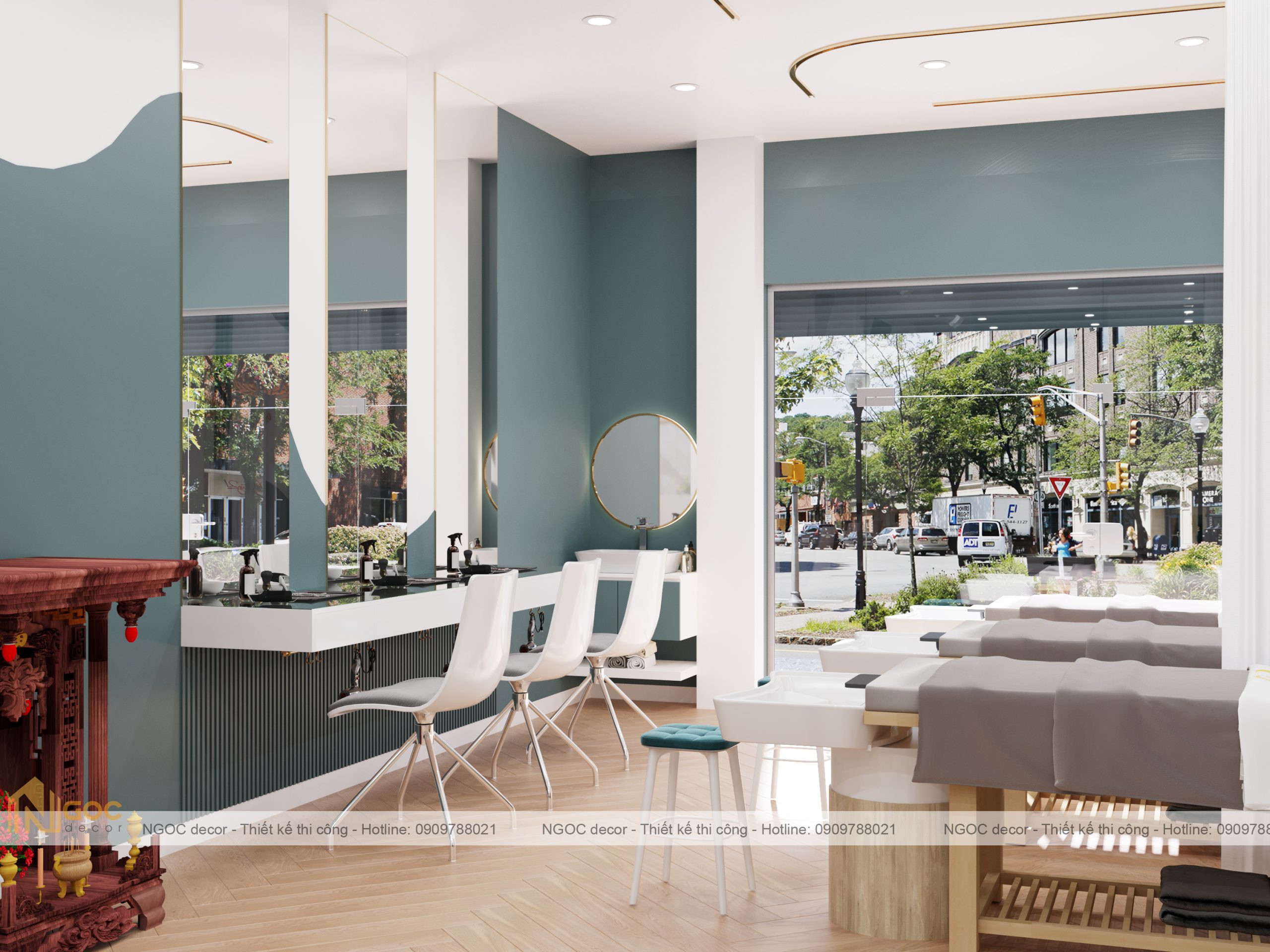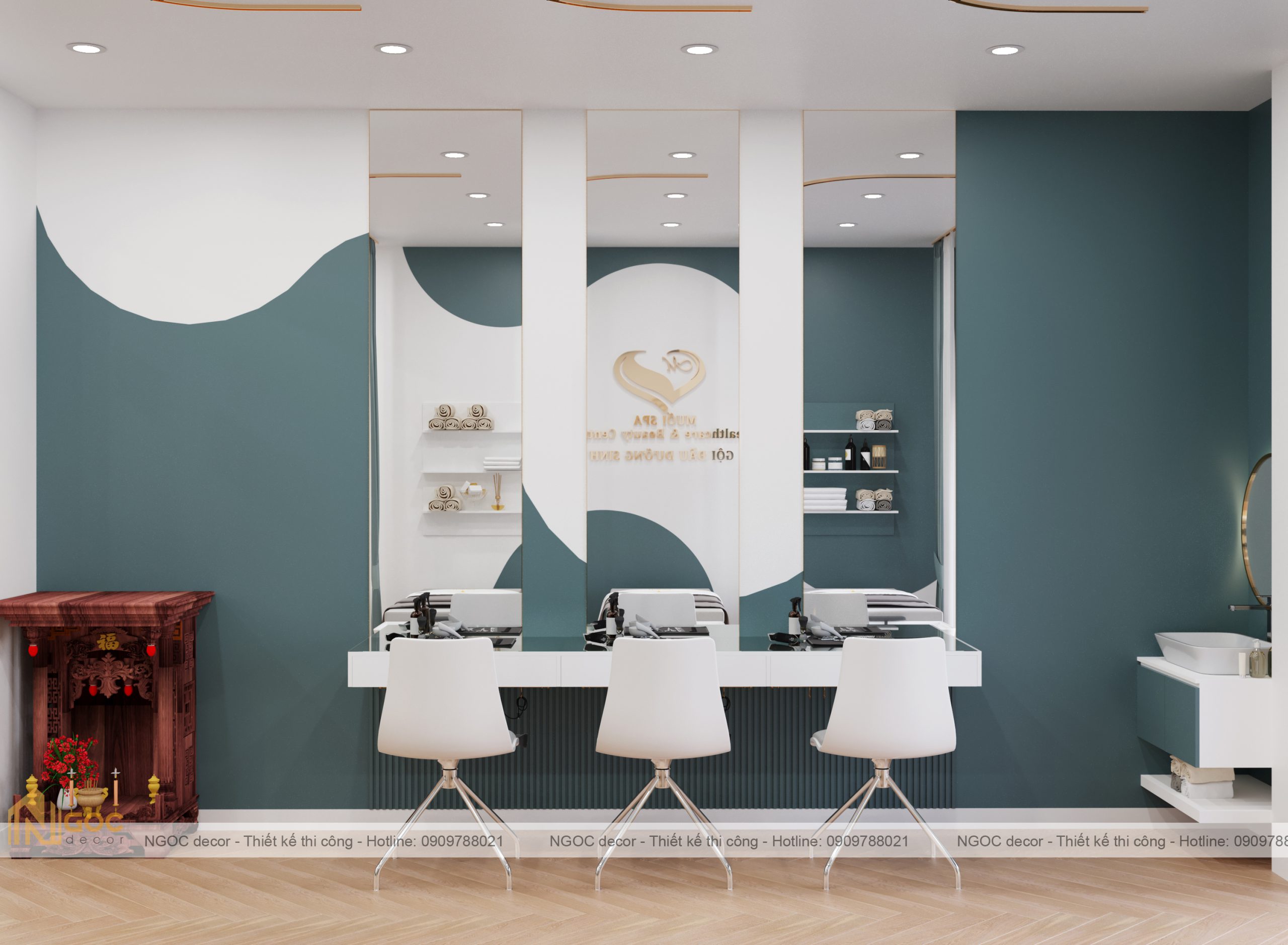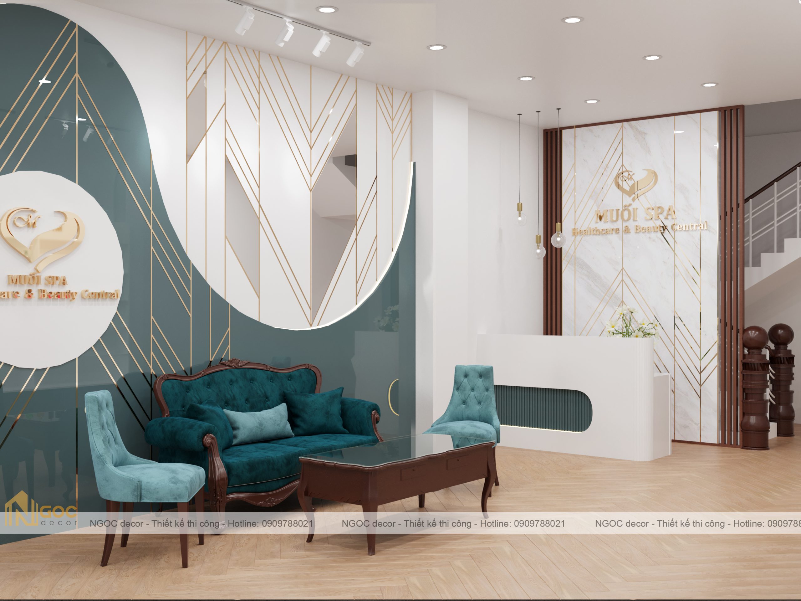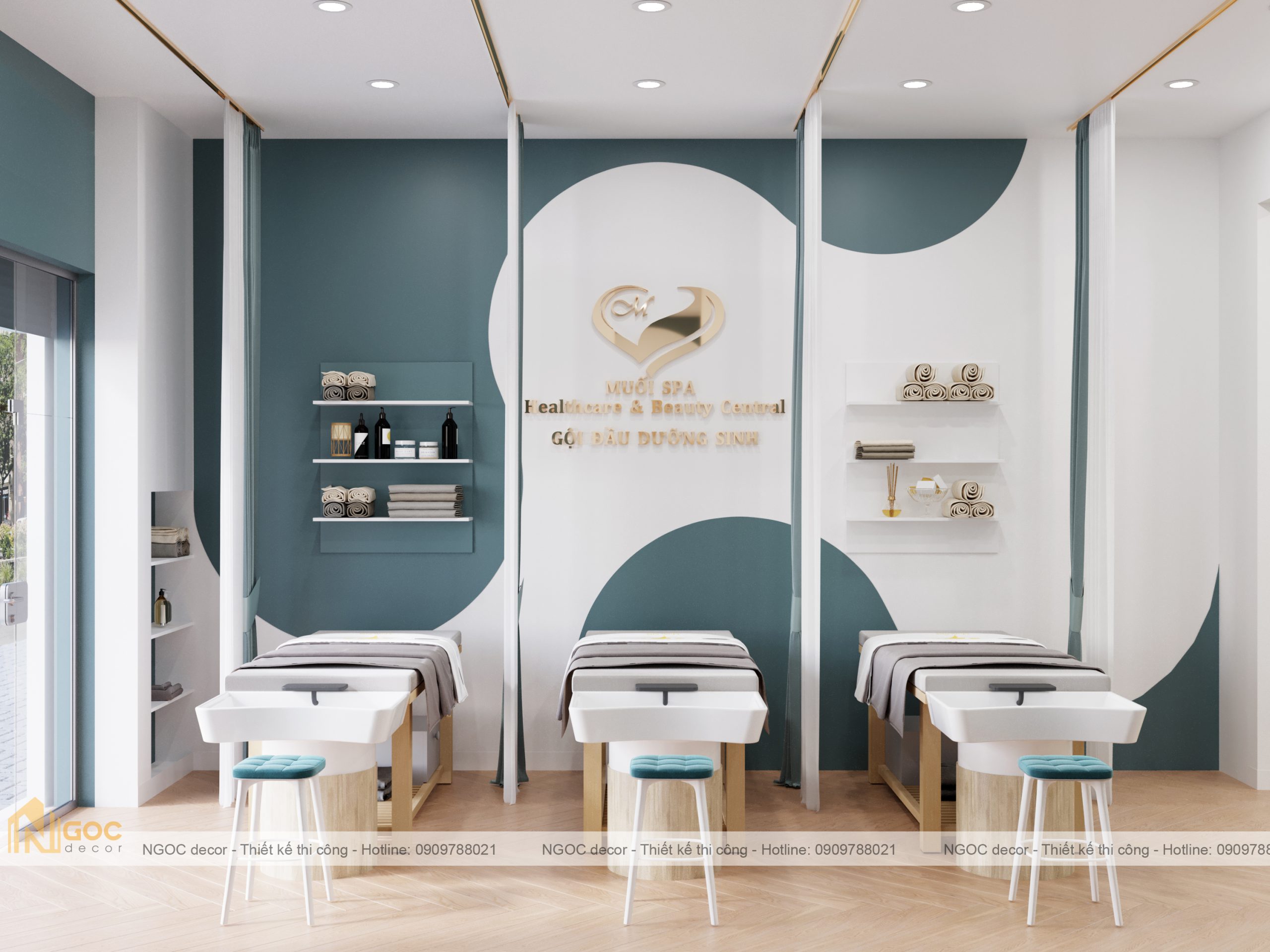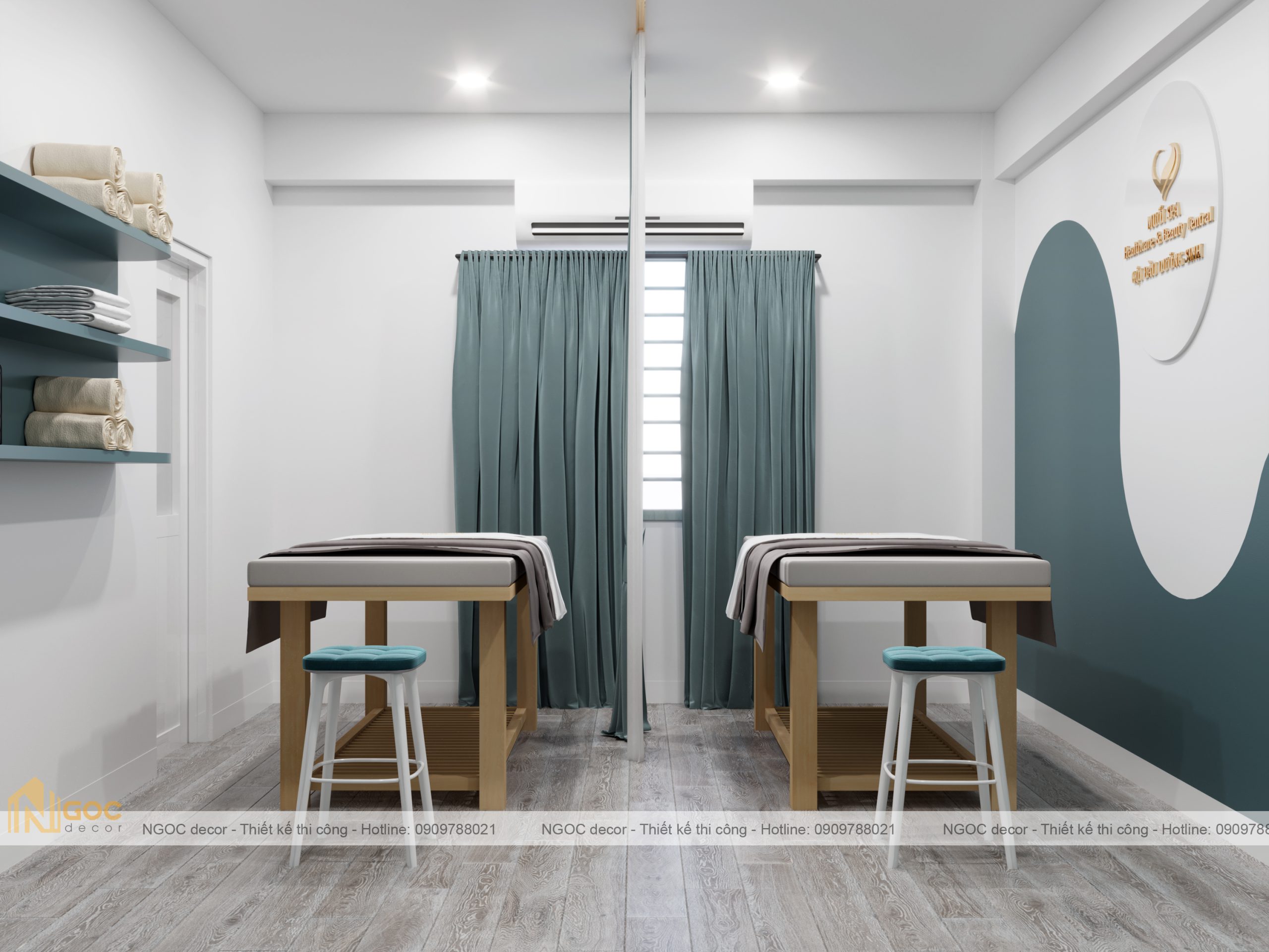Bao gồm phòng spa ngoài, phòng tiếp khách – lễ tân, phòng spa phía trong